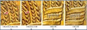 1.— Отросток у четвертого зерна. 2.— Нет отростка у четвертого зерна. 3.— Между витками 8 стеблей. 4.— Между витками 7 стеблей.