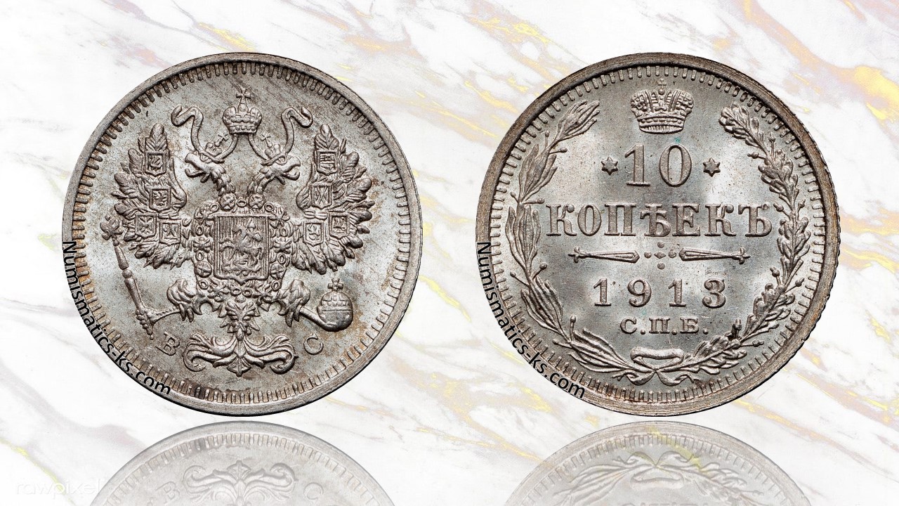 Silver 10 Kopeks 1913 Saint Petersburg Coin – Value, Price & Rare Collectible.