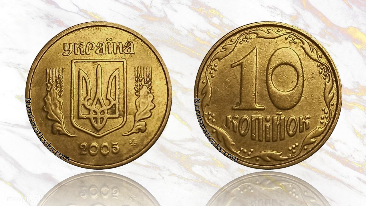 Монета 10 копійок 2005 року Україна — ціна, каталог, різновиди.