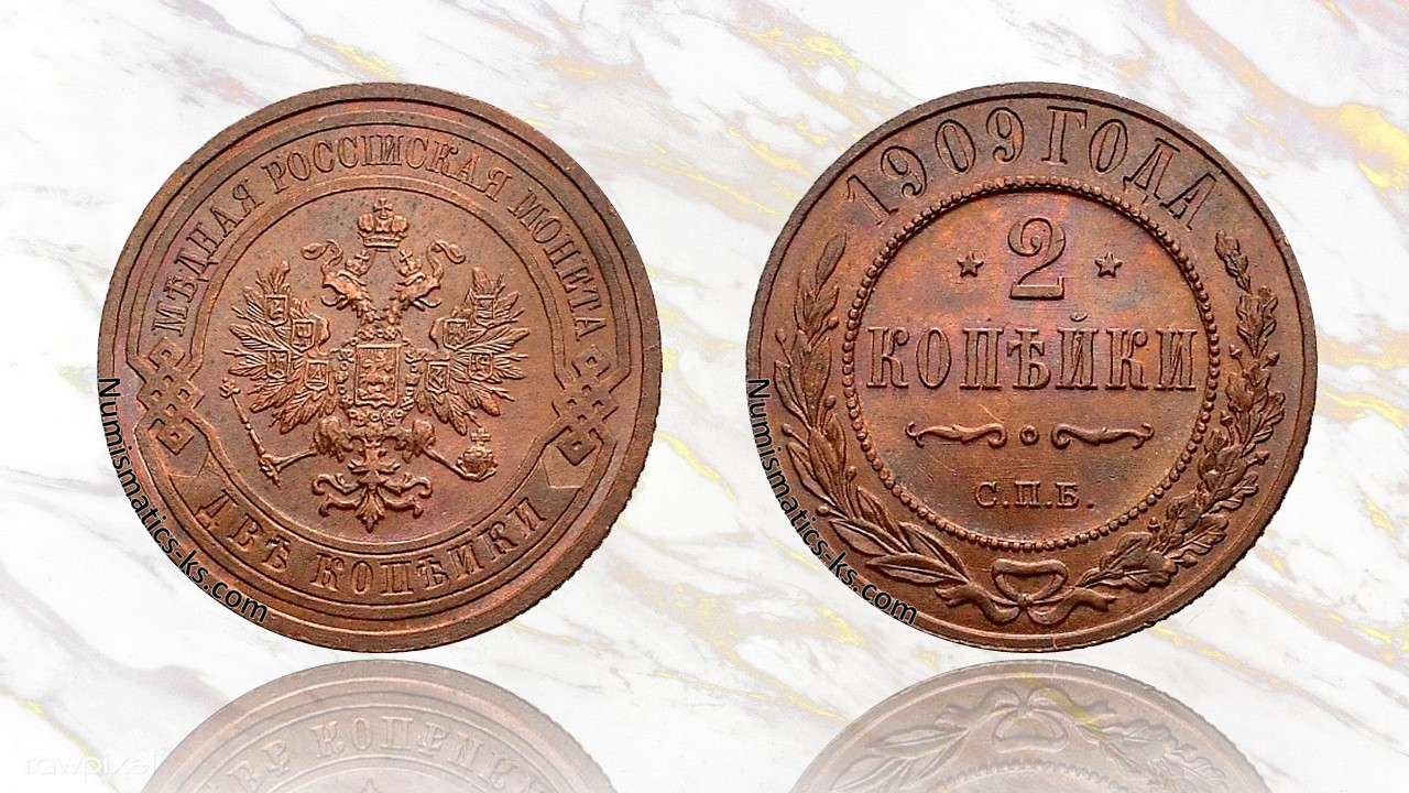 2 копейки 1909 года СПБ. Цена, стоимость, разновидности.