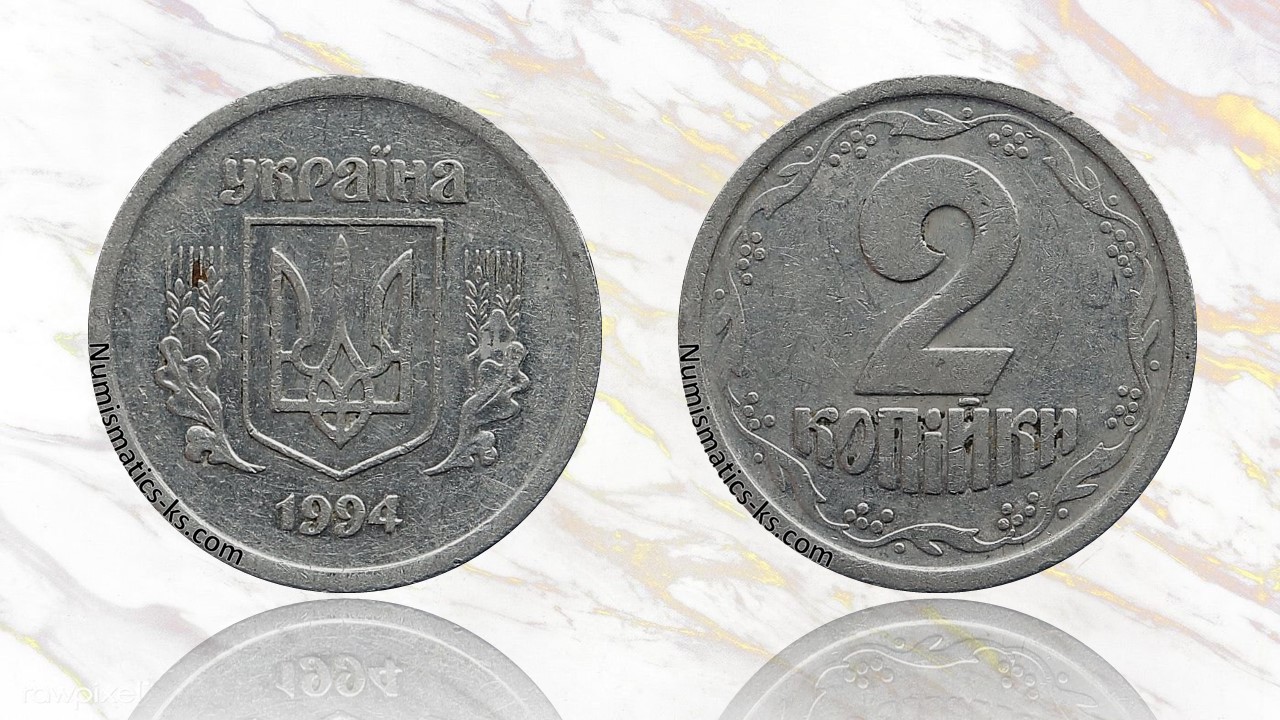 2 копейки 1994 года — обиходная монета Украины, выпущенная в первые годы после обретения независимости. Она предназначалась для повседневных расчетов и широко использовалась в денежном обращении страны. Монета изготовлена из алюминия, что делало её лёгкой и недорогой в производстве. Чеканка осуществлялась на Луганском патронном заводе. Общий тираж составил около 120 миллионов экземпляров, благодаря чему монета была массовой и доступной.