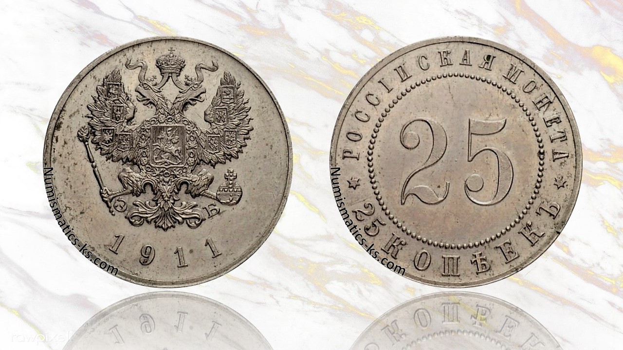 1911 Russian 25 Kopeks Silver Coin – Value, Varieties & Catalog Info.