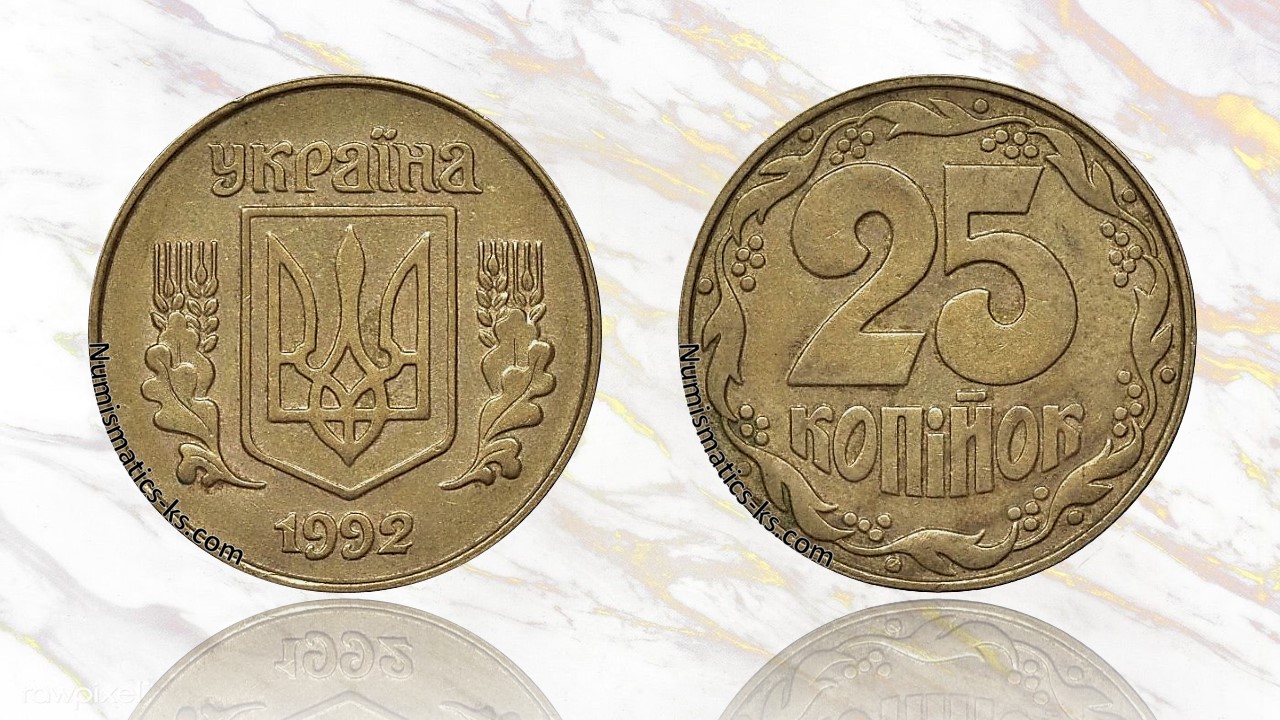 Обігова монета України 25 копійок 1992 року — опис, різновиди та вартість.