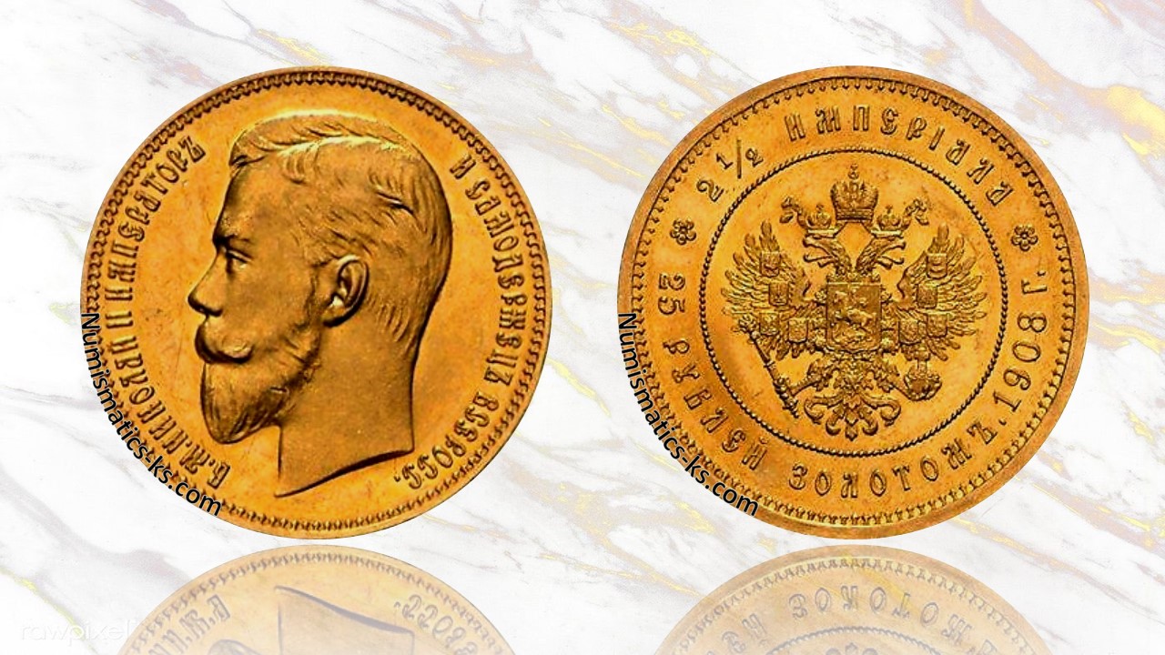 Discover the legendary 1908 Russian 25 Rubles gold coins issued during the reign of Tsar Nicholas II. Struck in .900 fine gold at the St. Petersburg Mint, these rare commemorative and presentation coins are among the most valuable Imperial Russian numismatic treasures. Explore current auction prices, catalog details, varieties, rarity, investment potential, and expert insights for collectors and investors.